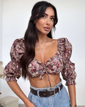 Crop top από 100% βαμβακερό ύφασμα εξαιρετικής ποιότητας με υπέροχο floral print! Με λάστιχα , πολύ άνετο και όμορφο! Ελληνικής παραγωγής μας.