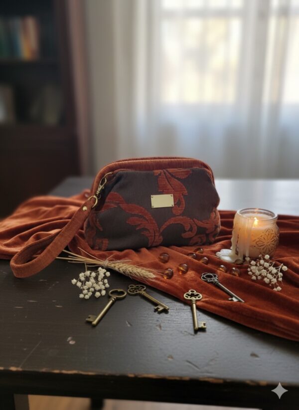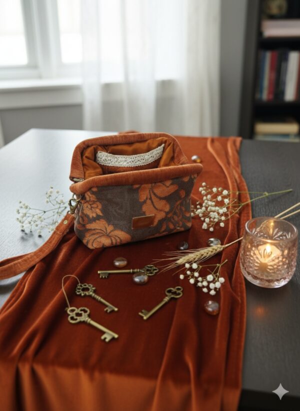Χειροποίητη τσάντα, μοναδικό κομμάτι υφάσματος, χρώμα κεραμιδιού