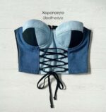 Bralette επενδυμένο με cups και μπανέλες , χειροποίητο με κομματάκια από τζιν Levi’s 501.