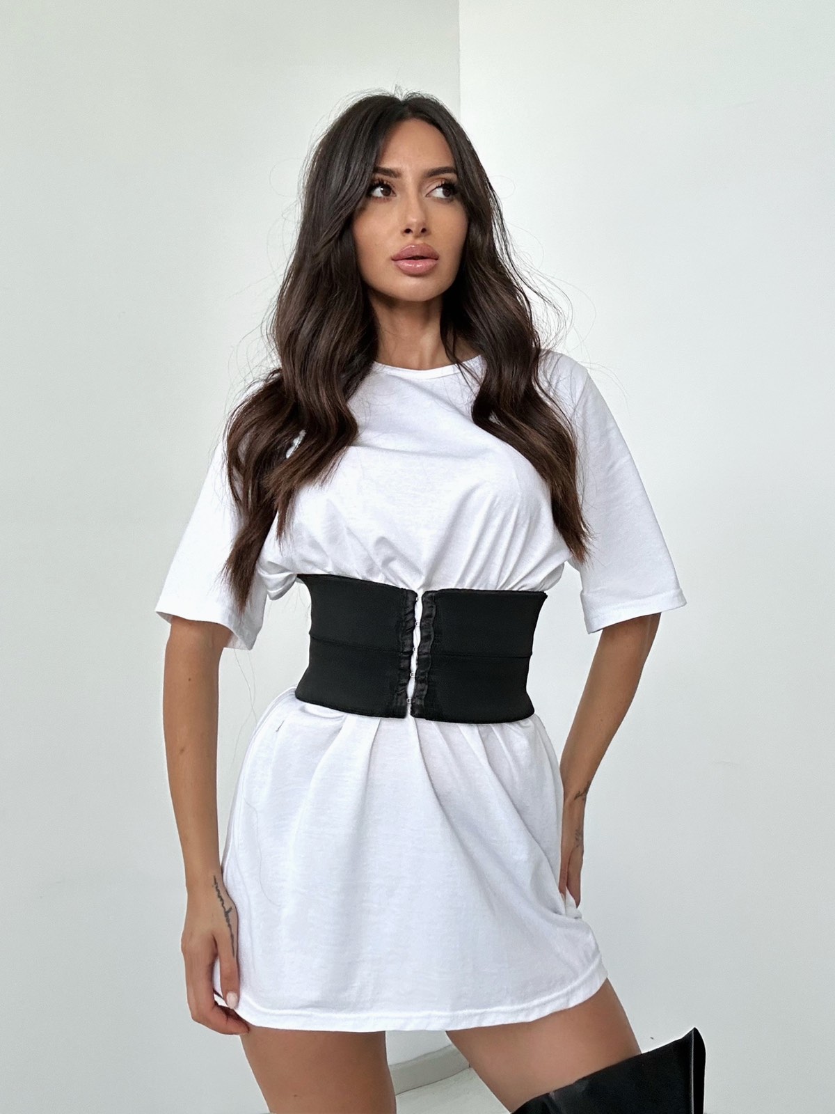Σετ δυο κομματιών με T-shirt μπλουζοφόρεμα από 100% βαμβακερό ύφασμα και super ελαστικού κορσέ με κόπιτσες που σμιλεύει απίστευτα τη μέση!Δικής μας παραγωγής.