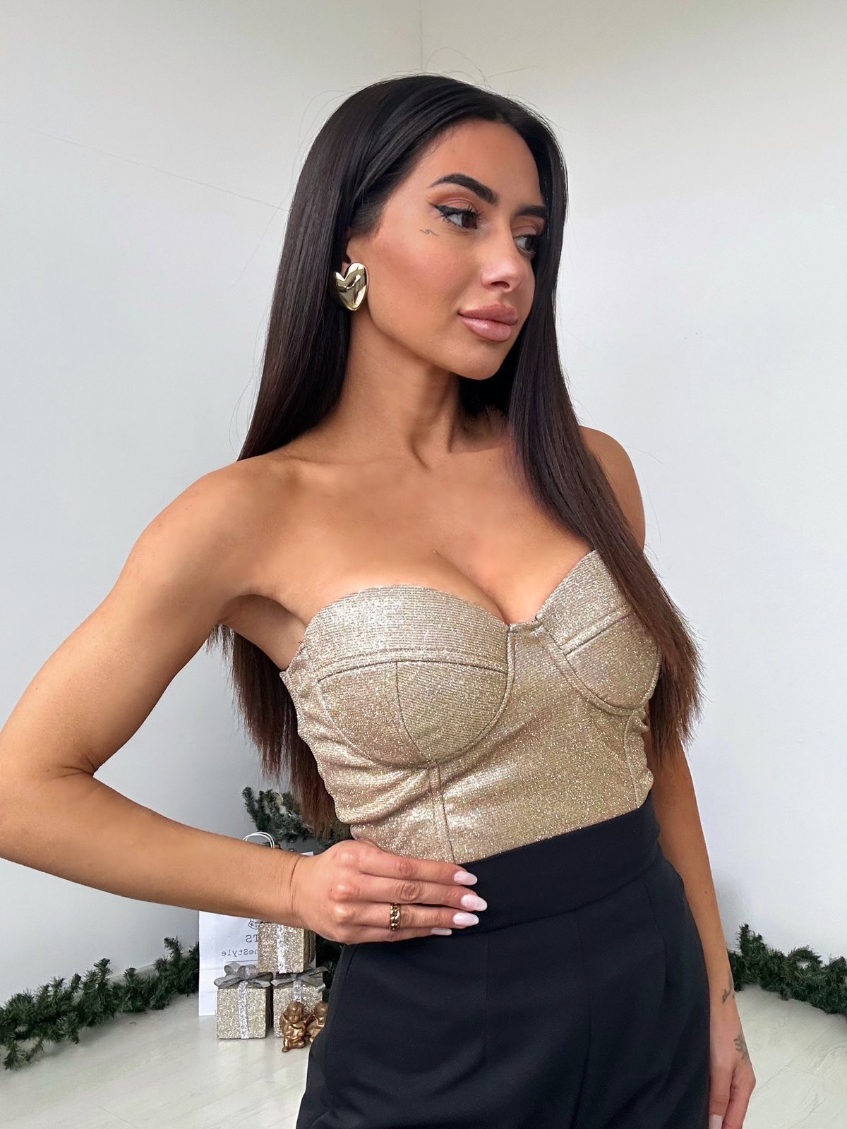 Χειροποίητο bralette επενδυμένο με μπανέλες και cups στο στήθος.Το ύφασμα είναι εξαιρετικά ιδιαίτερο με γκλιτερ.Kλείνει με μεταλλικό χρυσό φερμουάρ στην πλάτη.Ένα κομματι σικάτο και ποιοτικό.